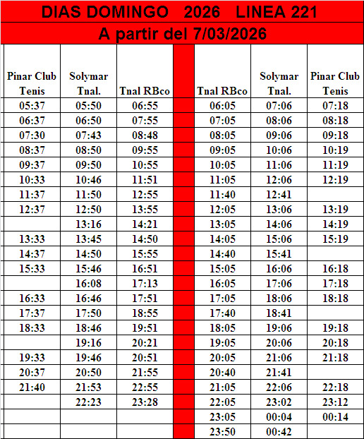 Horarios Invierno 2026 - Domingos
