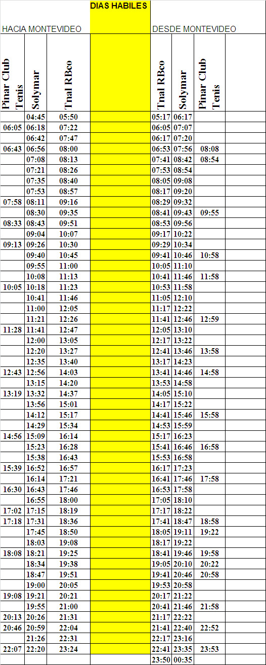 Horarios Invierno 2026 - Hábiles
