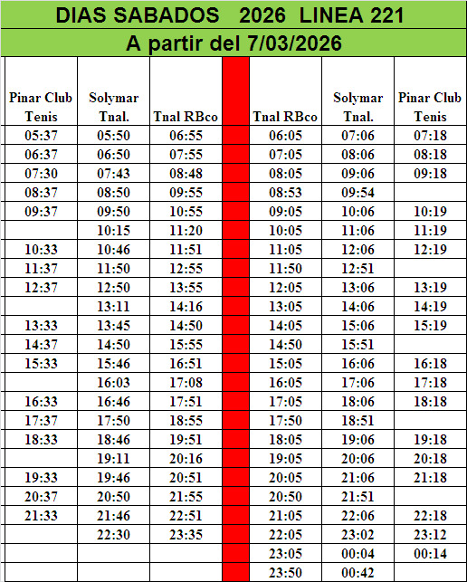 Horarios Invierno 2026 - Sábados